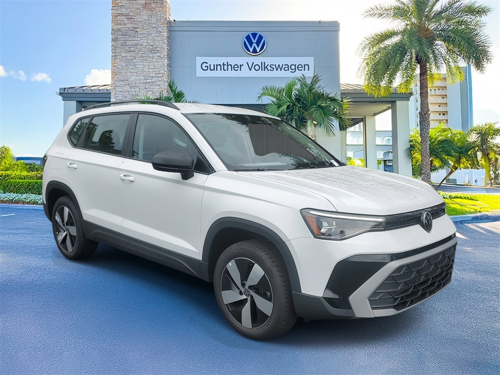 $2,905 off MSRP! Pure White 2025 Volkswagen Taos 1.5T S 25/33 City/Highway MPG